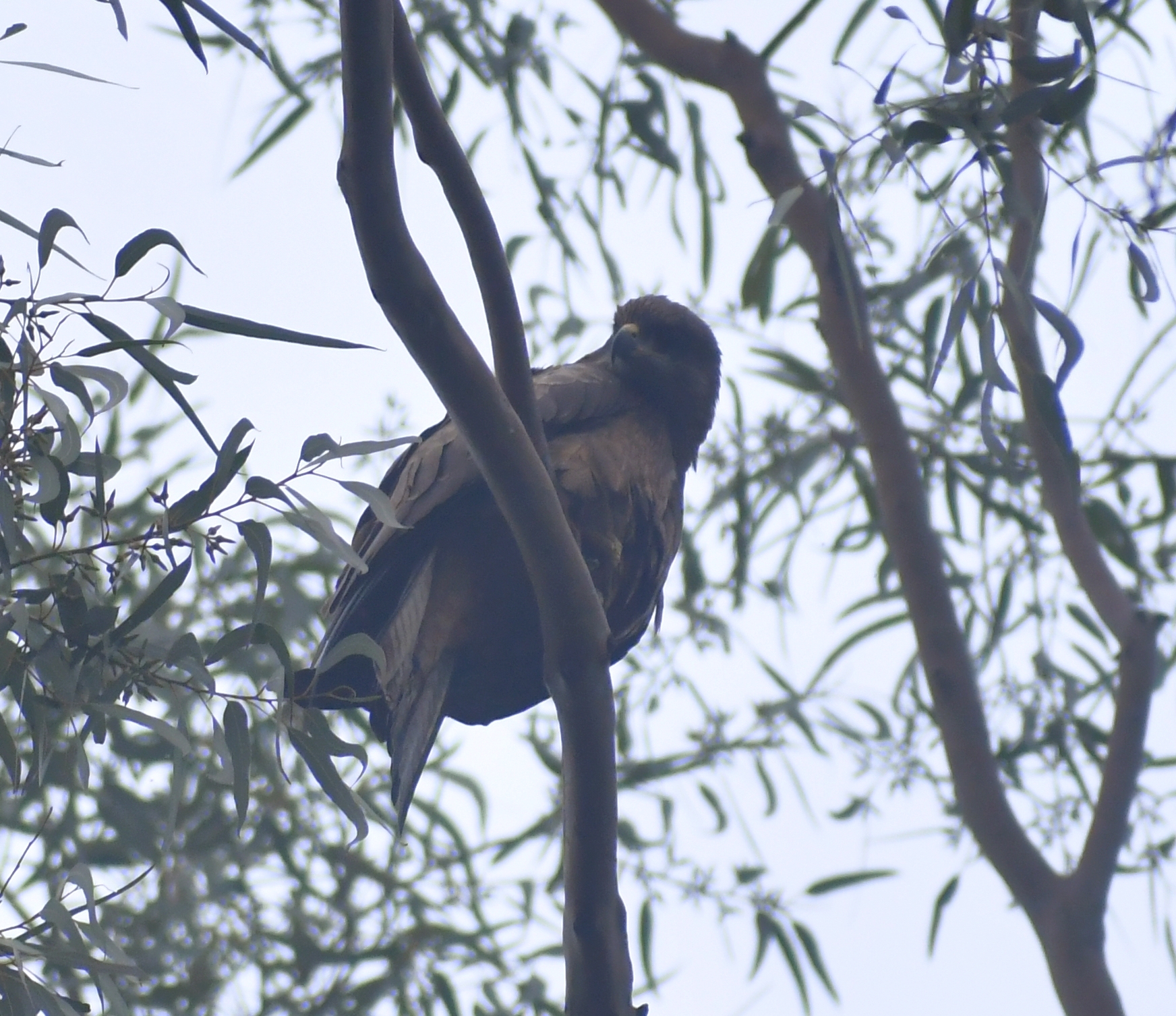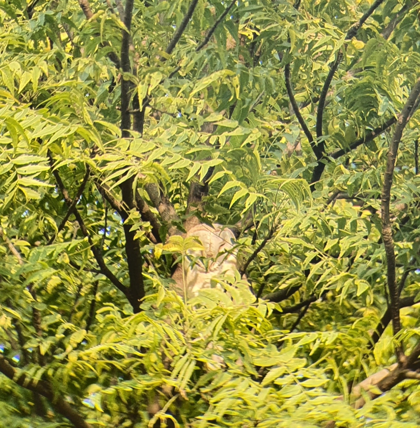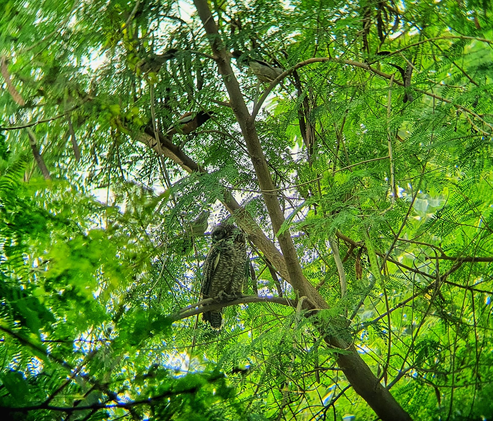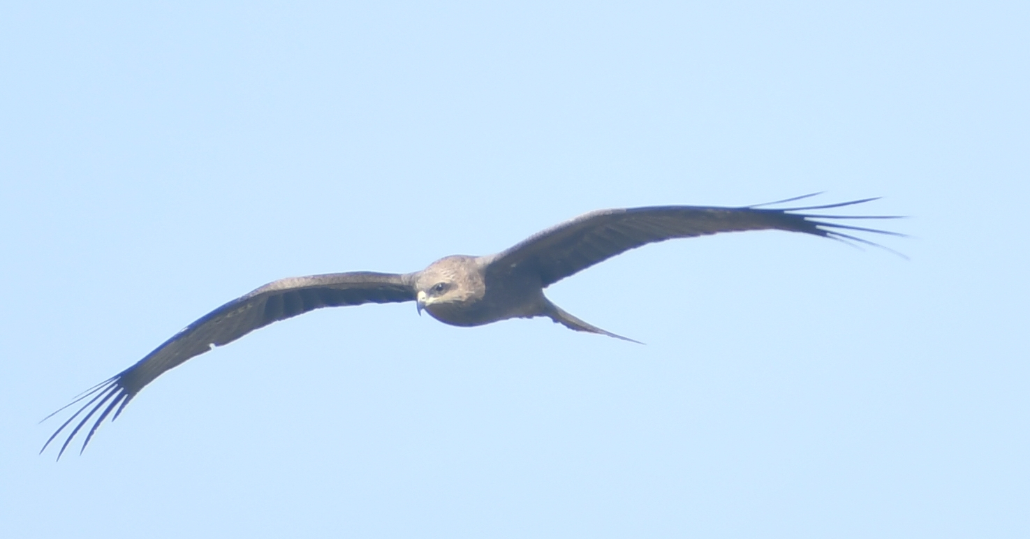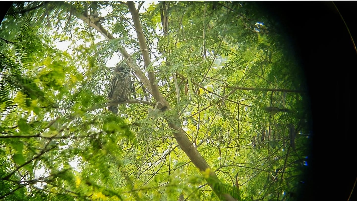 The black/pariah kite is perhaps the most frequently sighted bird of prey on campus. From early mornings to late evenings one can see them circling above. They often perch on very tall trees in quieter areas of the campus. Their calls are again unmistakable, a loud and shrill kee-lee-lee. Below is a picture of a curious kite locked onto RM while she tries to take a picture.