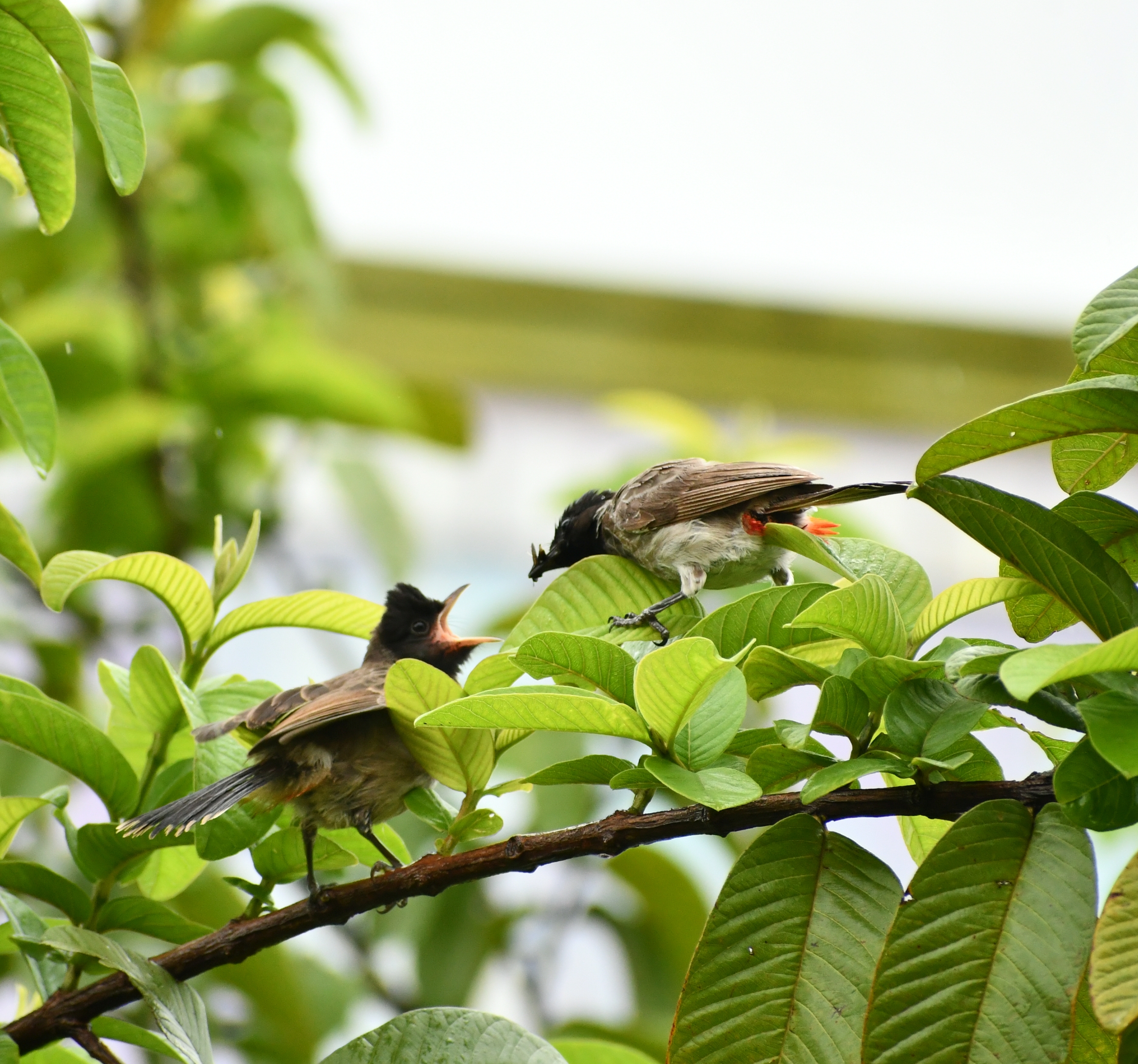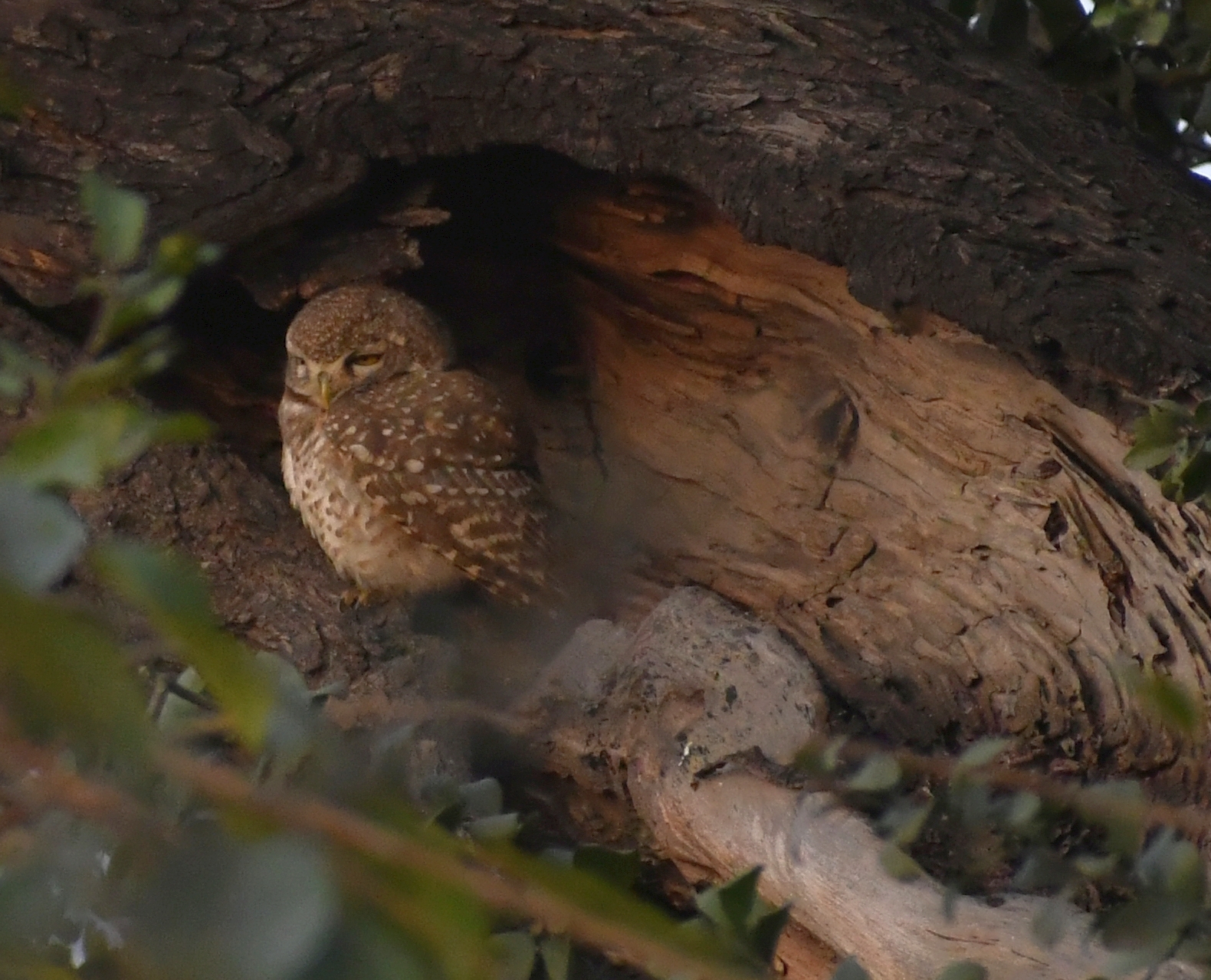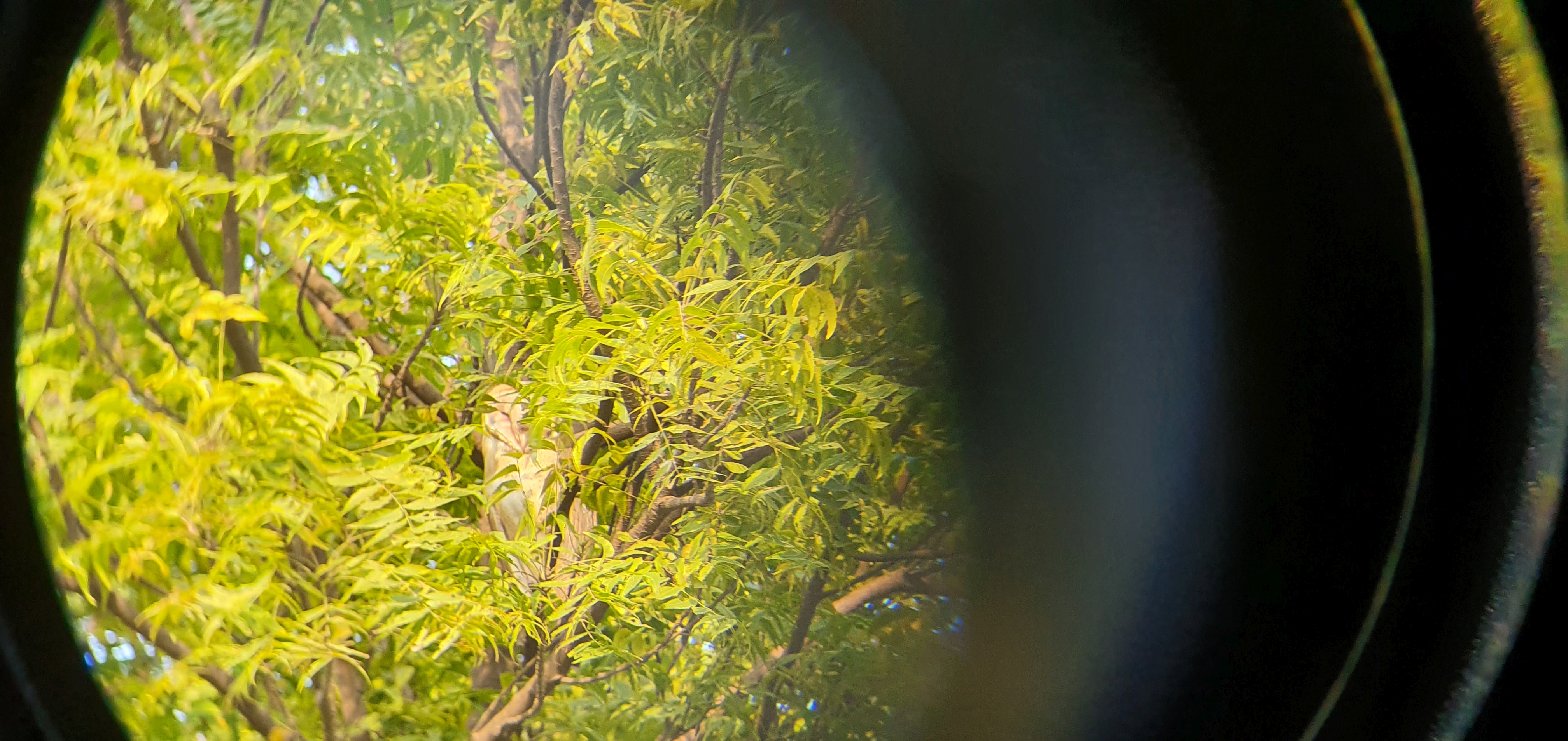 Koels were very active in the spring and now again throughout the summer. Every morning one can hear it's loud calls. Recently, we saw a pair together, awkwardly being third-wheeled by a spotted owlet. Koels have a very large sexual dimorphism in plumage, with the female having gray-white speckled and striped plumage whereas the male is jet black.