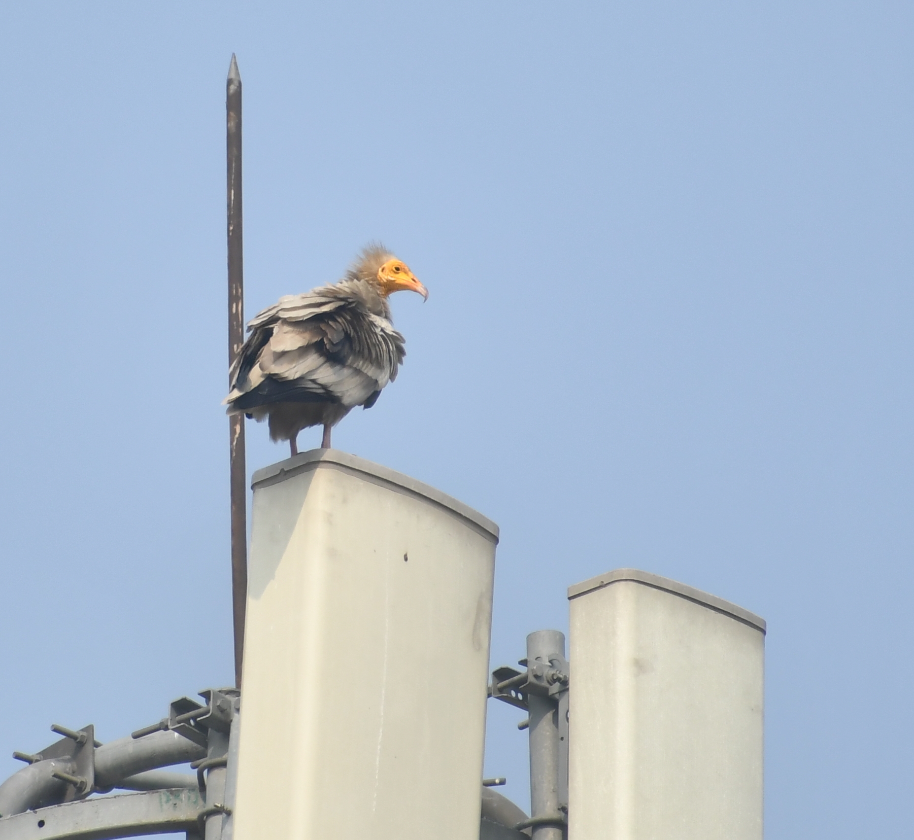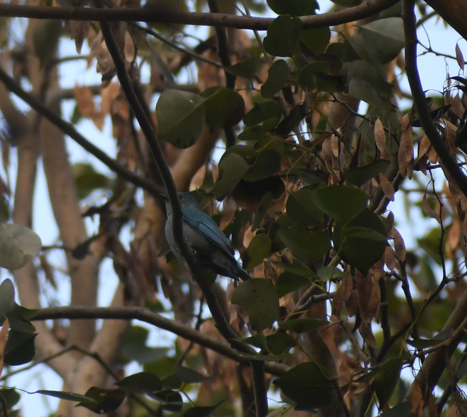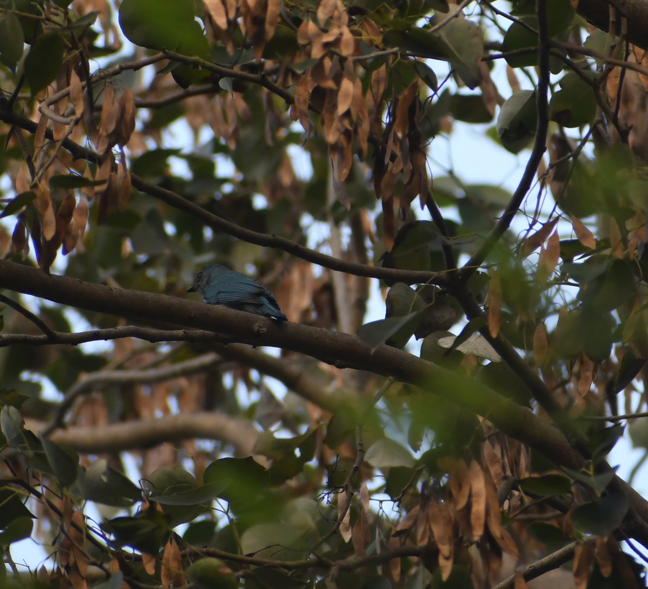 This bird has been our desk mate at work for more than a semester now. Every other day just before noon we see it perch on the tallest branch of the barren tree near the airstrip. This branch is directly visible from the window at the desk RM and I share. From our desks itself, we have seen it preening, drying its feathers on a rainy day, roosting or just chilling out. We don't know where it comes from or where it goes. But seeing it there makes us a little cheerier and smile.