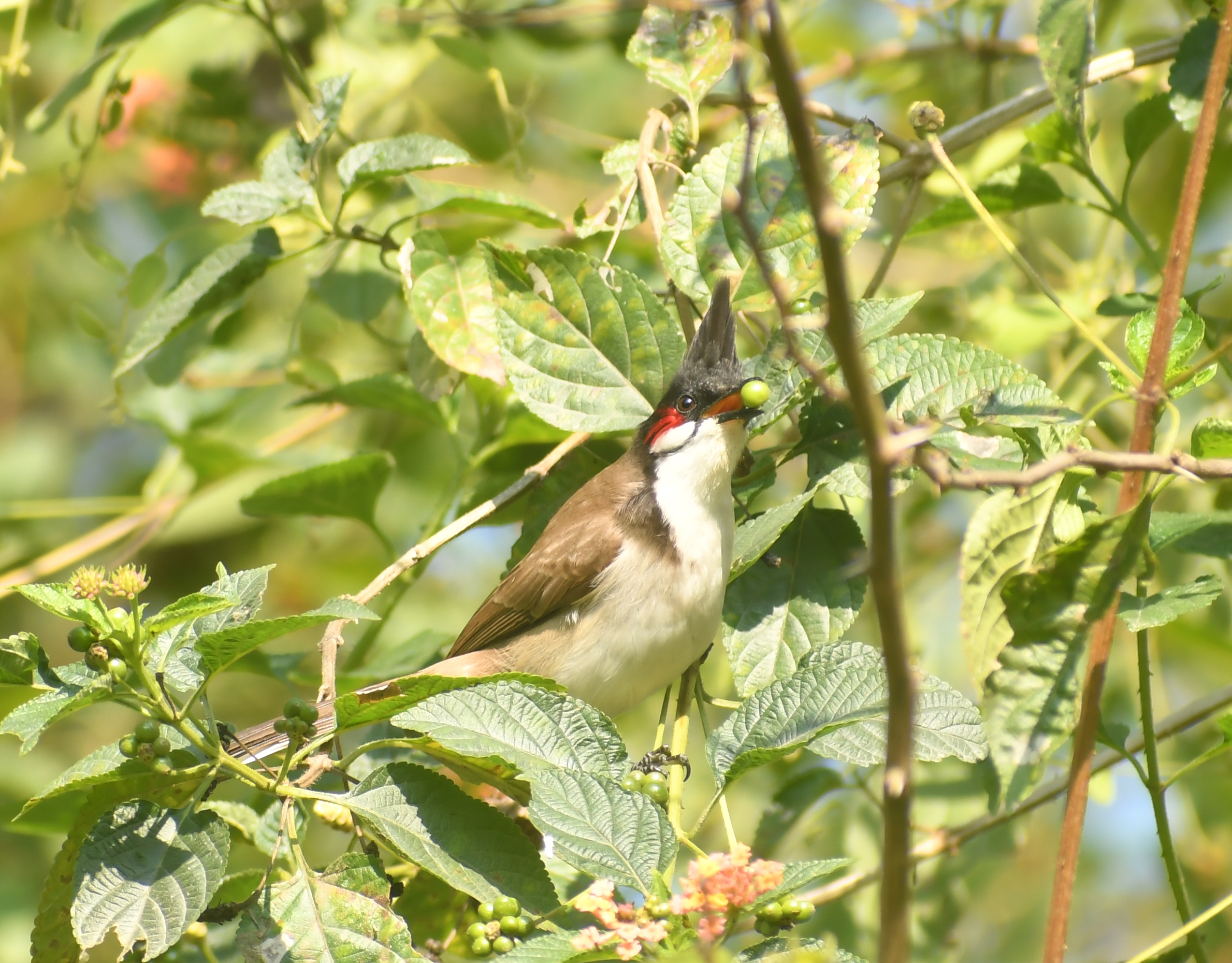 Another bird with spectacular colours and flight. In flight, its white plumage makes a very distinctive V, similar to that of the lapwing. Also, a wide array of calls. Their different calls had initially fooled us into thinking we were about to see a different bird, each time surprised to find it singing. From a crow like call, to a bell like ko-ende-rink, to a clock-bird like periodic koo-koo, this bird has it all. We've seen this bird munching on berries, pulling out insects from the bark of trees and even feasting on a bhutta left behind. As you will see, treepies are also excellent community members, often indulging in mobbing.